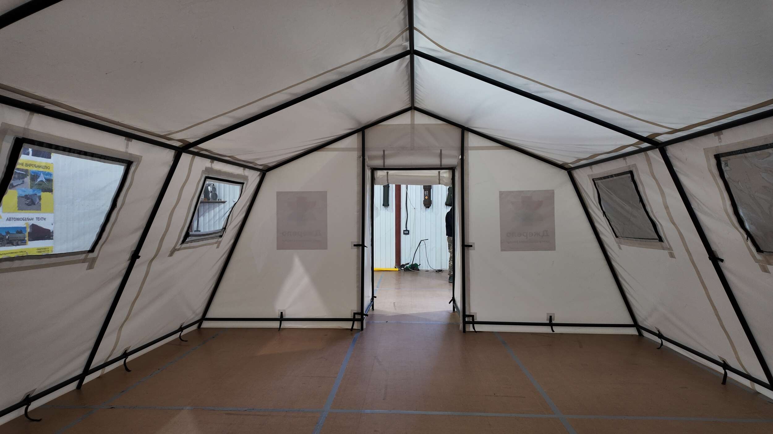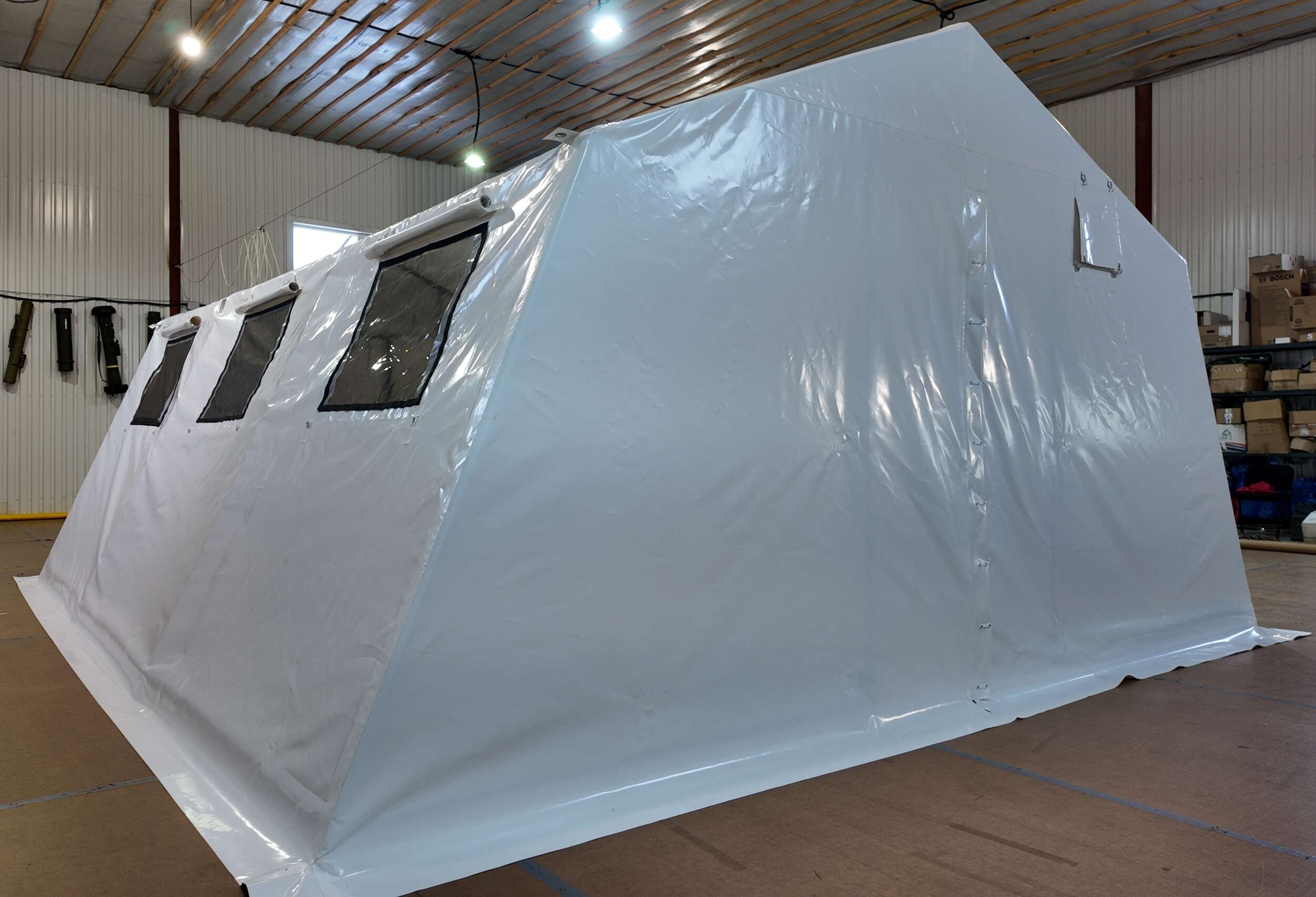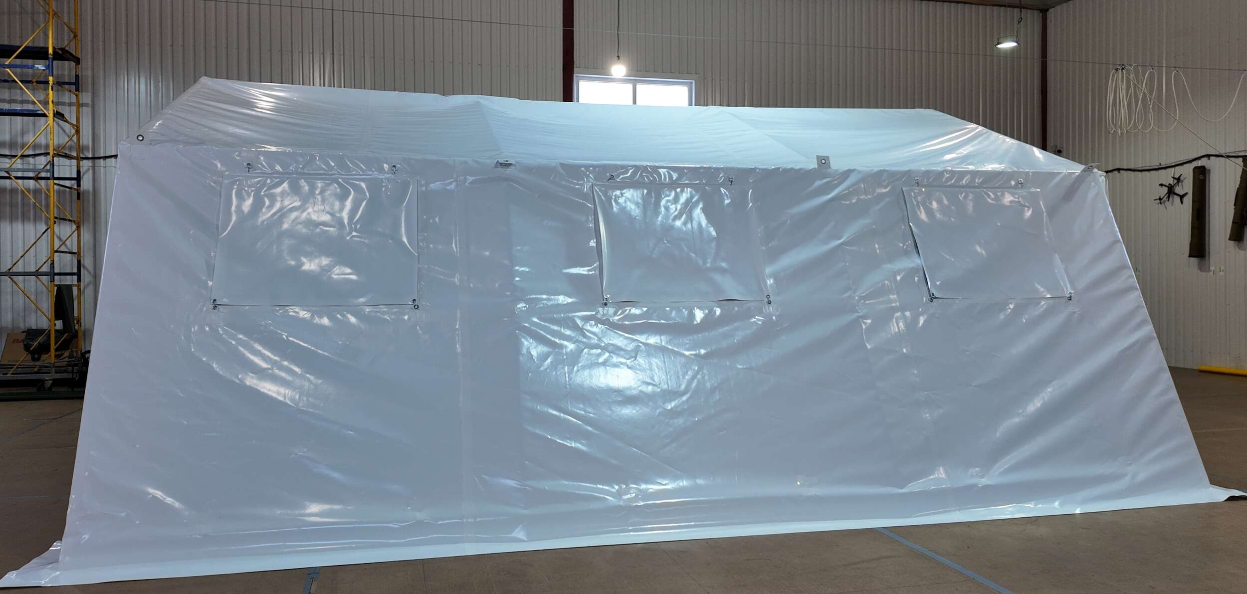 Палатка предназначена для использования как в полевых условиях для военных, медиков, строителей, так и как дополнительное помещение для мастерской, склада, гаража и других целей. Относительно легкий каркас обеспечивает возможность быстрого монтажа/демонтажа палатки, что позволяет использовать палатку как мобильное помещение. Крыша и стены изготовлены из ПВХ ткани плотностью 650 гр/м2. Для этих тканей тканей характерна высокая механическая прочность, длительная эксплуатация изделий, а также устойчивость к выгоранию и загрязнениям. Они могут эксплуатироваться при диапазоне колебаний температур от -40 до +70 градусов Цельсия. Тентовые ткани обладают рядом характеристик, благодаря которым обладают высокой долговечностью. Текстиль изготовлен из 100% полиэстера высокой прочности, покрыт высококачественным ПВХ с обеих сторон, а также защитным слоем лака. Это обеспечивает защиту от влаги, стойкость к ветровым нагрузкам, выгоранию, перепадам температуры. Срок службы тента из ПВХ ткани более 5-7 лет при активной эксплуатации.