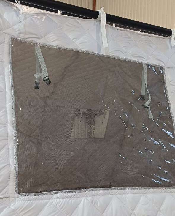 4. Окно 0,6*0,8 м – 6 ед. из прозрачного мягкого ПВХ плотностью 600 гр/м2 (материал Ахиллес), с возможностью открытия на молниях (уже входит в вес наружного слоя и впаян в наружный слой палатки) с москитной сеткой и наружным клапаном
