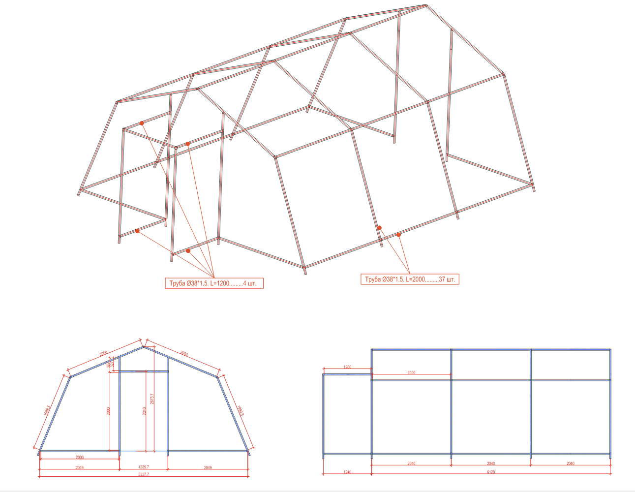 2. Каркас з порошковим фарбуванням, виконаний з круглої сталевої труби д 38 мм товщиною 1,5 мм